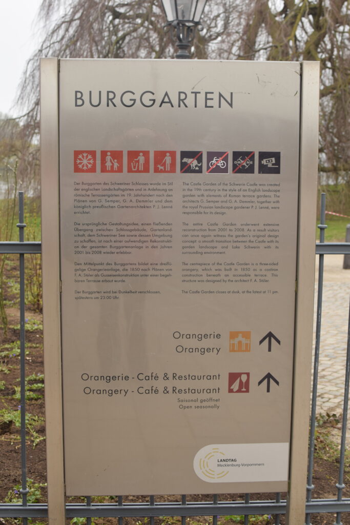 Hund & Natur: Der Hund hat die Möglichkeit zu schnüffeln und Hundedinge zu tun. Der Garten des Schloss Schwerin ist gut besucht und wird auch gerne mit Hund erkundet. Daher kann es zu vielen Hundebegegnungen kommen.